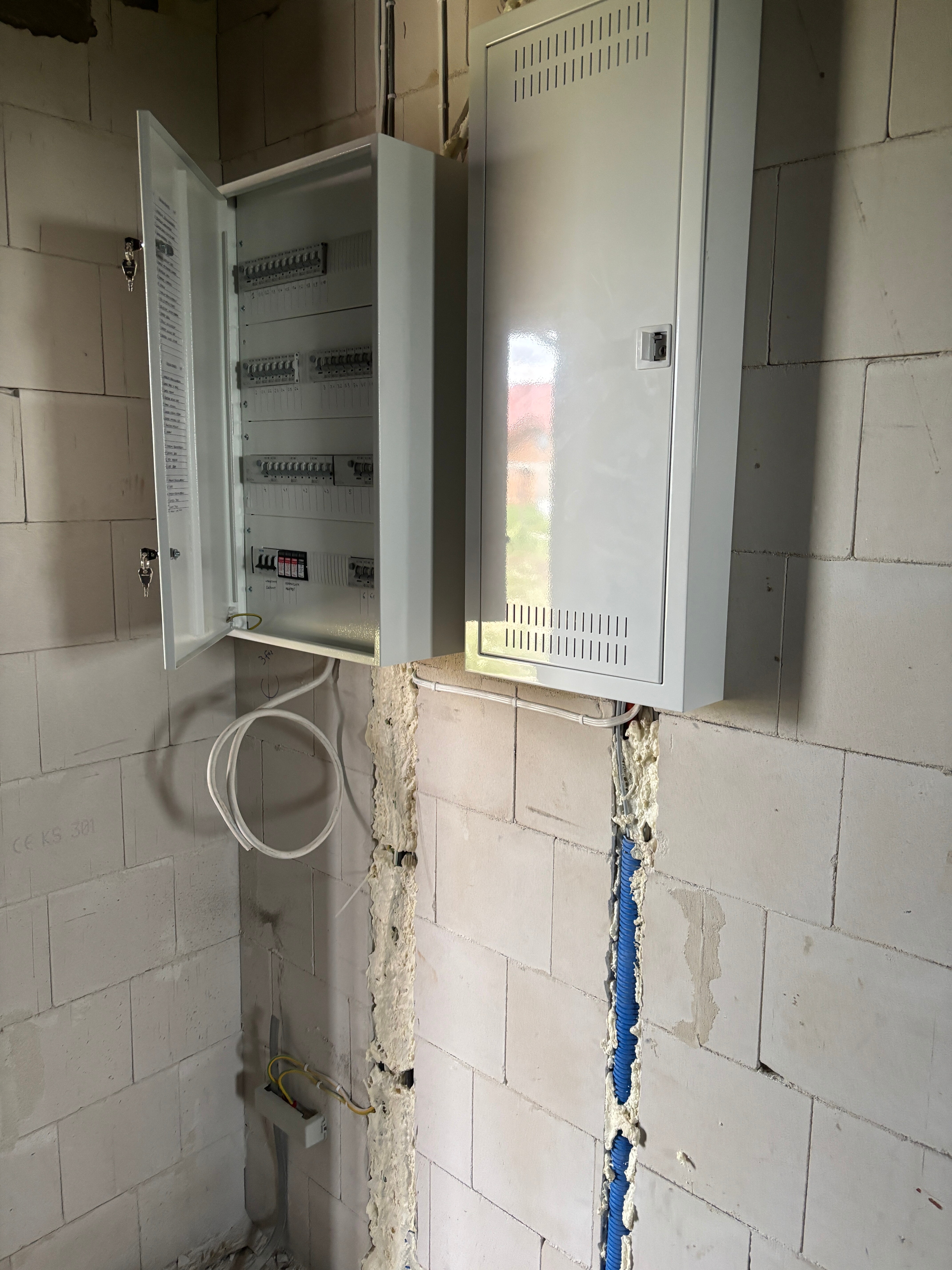 To przykład realizacji, w której inwestorowi zależało nie tylko na poprawnym wykonaniu instalacji, ale też na spokojnym przejściu przez etap wykończenia. Istotne było zostawienie rezerw pod przyszły smart home, rolety, dodatkowe obwody oraz czytelne przygotowanie budynku do dalszych prac.