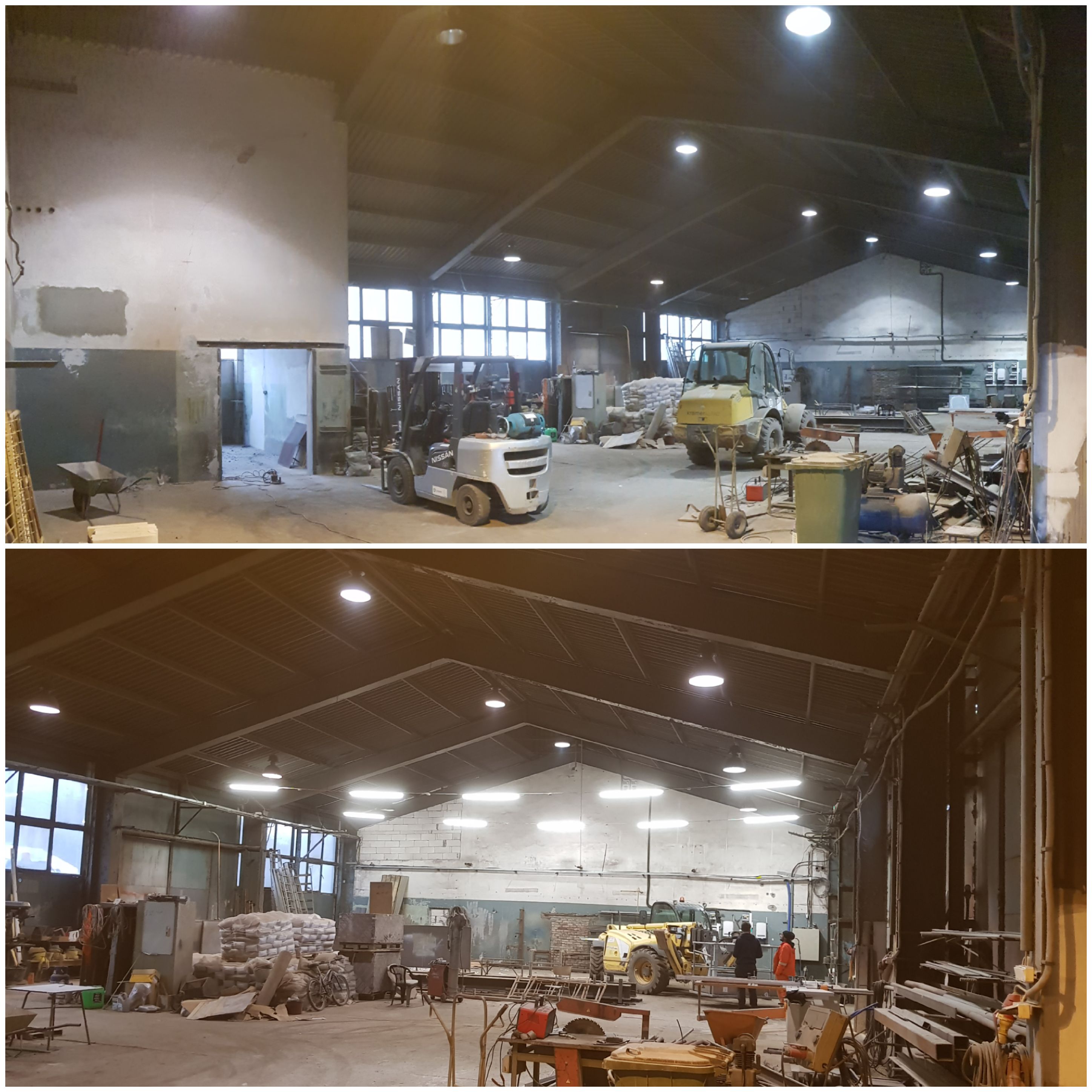 Wymiana i konfiguracja oświetlenia roboczego w hali z naciskiem na czytelność stanowisk oraz ekonomię pracy.